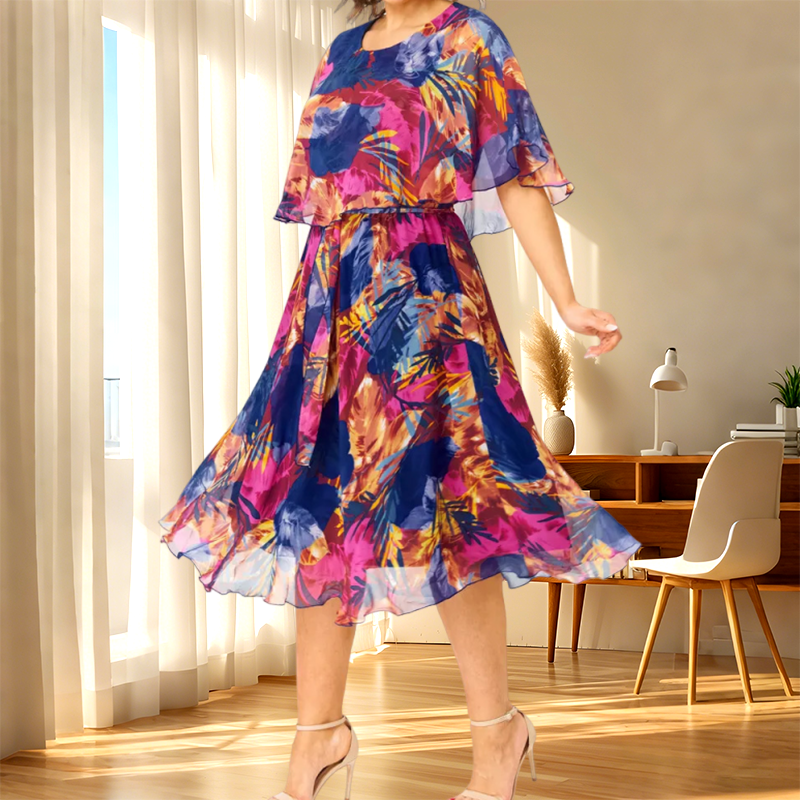 1 * Elegant half -sleeved flower dress for women