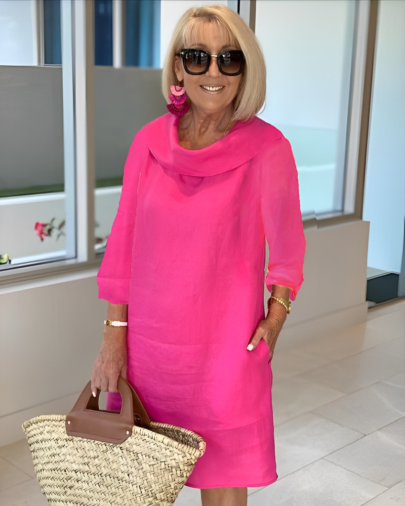 Cotton Pile Collar 3/4 Sleeve DressCottonPile Collar 3/4 Sleeve Dress