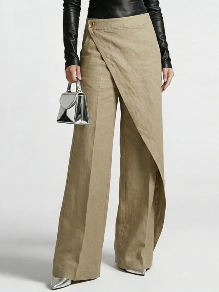 Women's Solid Color Elastic Waist Casual Loose Linen Wide-leg Pants
